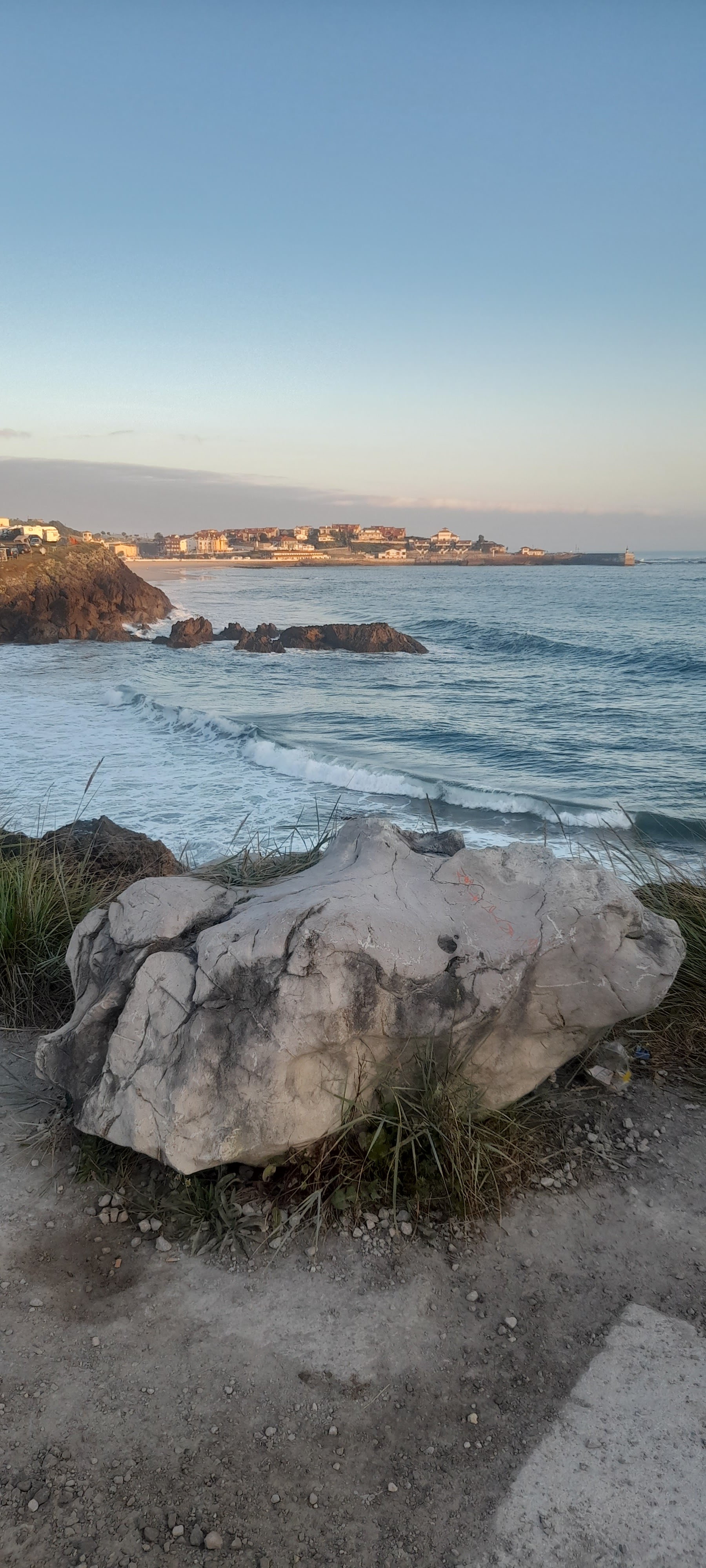 Así y todo, voy hasta el restaurante Joseín para bajar por el paseo de Jesús Cancio. Bajo una repisa de La Caracola, una mujer se posiciona desde bien pronto. Hay oleaje: creo que hoy no me bañaré...